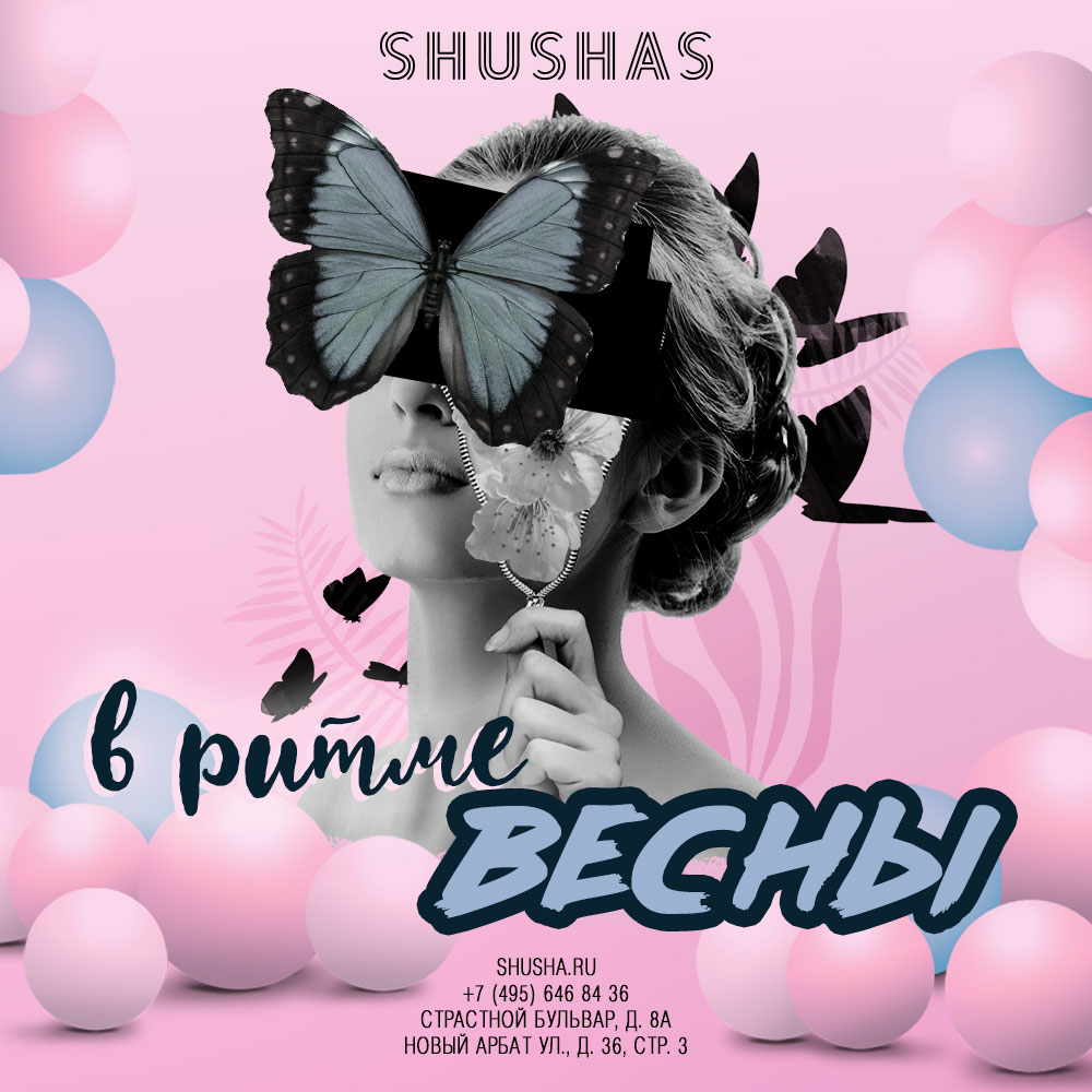 ПЯТНИЦА: В ритме весны в SHUSHAS на Пушкинской! Сегодня будет жарко! Гоните прочь унылые пейзажи и слякоть, это в прошлом. Давайте вместе ощутим легкость в движениях и насладимся ароматом весны и теплыми лучами солнца. Пусть Ваши сердца бьются в неудержимом ритме весны! Вас ждет яркая и жаркая ночь в ресто-баре, караоке и ночном клубе SHUSHAS на Пушкинской. В эту ночь хитам, воспевающих весну, любовь и солнце, будет уделено особое внимание. #СтрастиНаСтрастном Ужинаем и поем в караоке с 17:00 | Танцуем после 23:00 | Отдыхаем до 5 утра Скидки и акции :