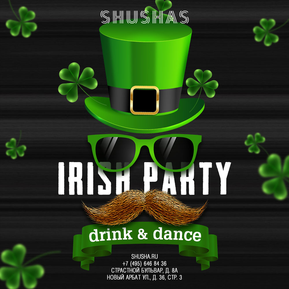 СУББОТА: Irish party: drink & dance в SHUSHAS на Пушкинской. Ирландия - страна виски и веселых людей. Восполним пробелы в путешествиях и отправимся в Ирландию, отдохнем от души с лучшими ирландскими напитками.Сегодня в ресто-баре, караоке и ночном клубеSHUSHAS на Пушкинской любимый Джемесон и изысканный Бейлис будут литься рекой, как и вкуснейшее пиво. Поговаривают, что ирландцам комфортно, когда все вокруг счастливы. Значит, мы попали в точку – в нашем баре самая высокая концентрация счастливых людей. А после посиделок приглашаем на ирландские танцы – правда, подлинность не обещаем, зато современные ритмы и модное звучание – наверняка. #СтрастиНаСтрастном Ужинаем и поем в караоке с 17:00 | Танцуем после 23:00 | Отдыхаем до 5 утра Скидки и акции :